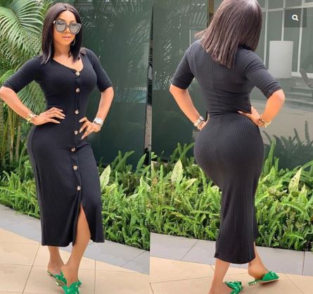 Controverisal On-Air-Personality and model, Toke Makinwa showed off her back view in a recent photo as she has been doing regularly.